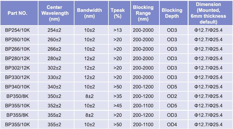 4、庫存:上萬種標(biāo)準(zhǔn)及非標(biāo)準(zhǔn)帶通濾光片產(chǎn)品現(xiàn)貨供應(yīng)