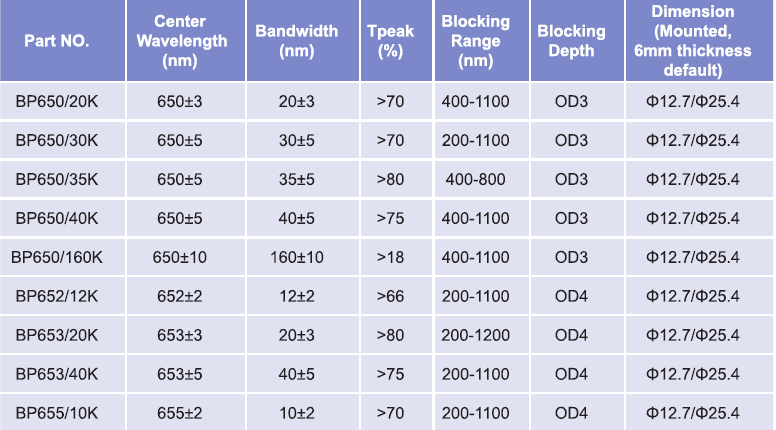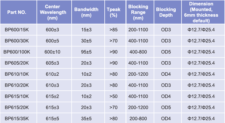 4、庫存:上萬種標(biāo)準(zhǔn)及非標(biāo)準(zhǔn)帶通濾光片產(chǎn)品現(xiàn)貨供應(yīng)