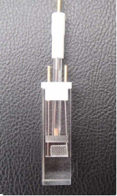 2.9光譜電化學(xué)池 全石英熔融法制作,聚四氟乙烯蓋子;三電:鉑網(wǎng)電,鉑絲電,銀-氯化銀電。 容積:夾縫8*6.5*1mm和8*6.5*0.5mm ![]() |