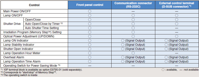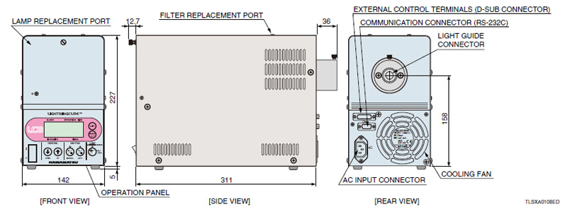 點光源采用長壽命高光強的汞氙燈和光損耗小化的光學(xué)系統(tǒng)。我們的紫外點光源因長壽命和高功率而獲得良好的聲譽,正在各種領(lǐng)域扮演著重要角色,尤其是FA(工廠自動化)。紫外點光源產(chǎn)生更少的熱量,因此能理想用于易熱損的微元件和光學(xué)元件的粘結(jié)時的紫外固化。[光導(dǎo)插口:背面,燈管更換位置:操作面板(前面)]